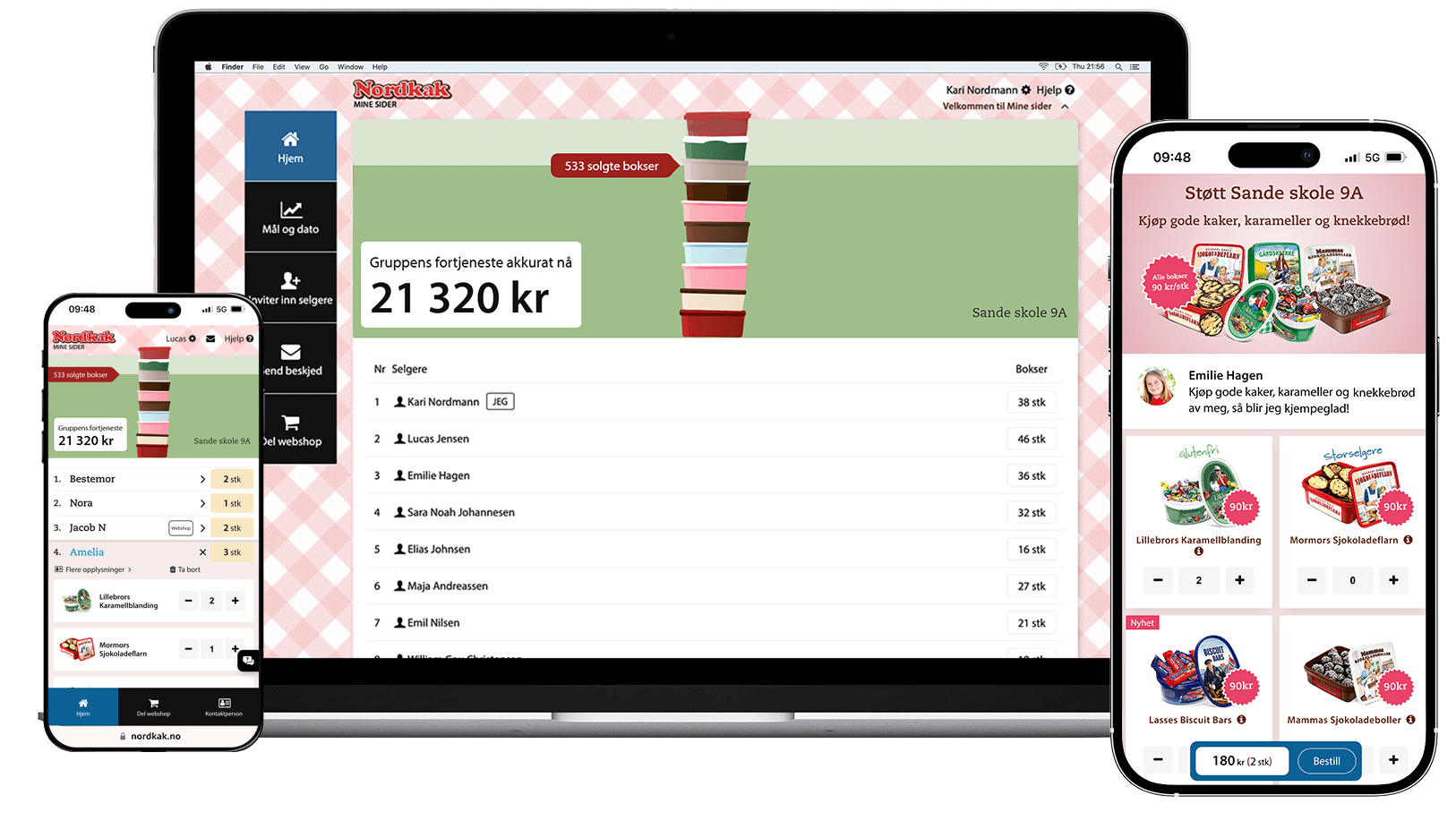 Når salget er avsluttet så bestiller kontaktpersonen på Mine sider for hele gruppen. Dagenereres en samlet bestilling til Nordkak. Du slipper å telle manuelt, samle inn lapper eller rydde opp i ufullstendige skjemaer. Dette reduserer risikoen for feil og gjør hele prosessen mer pålitelig.